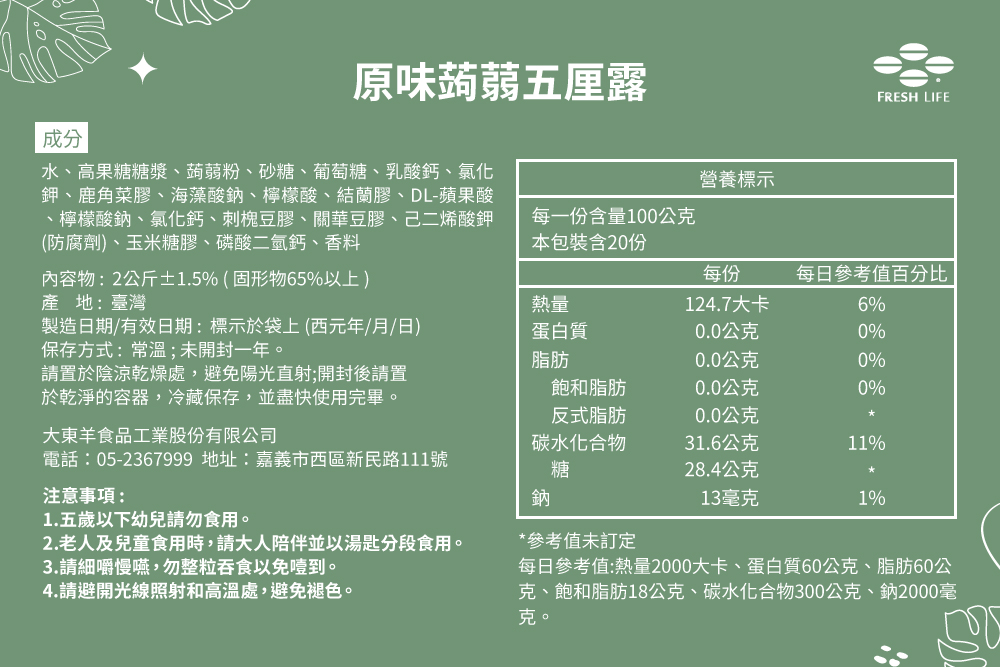 2、蒟蒻低卡高飽足,一般澱粉珍珠熱量的1/3