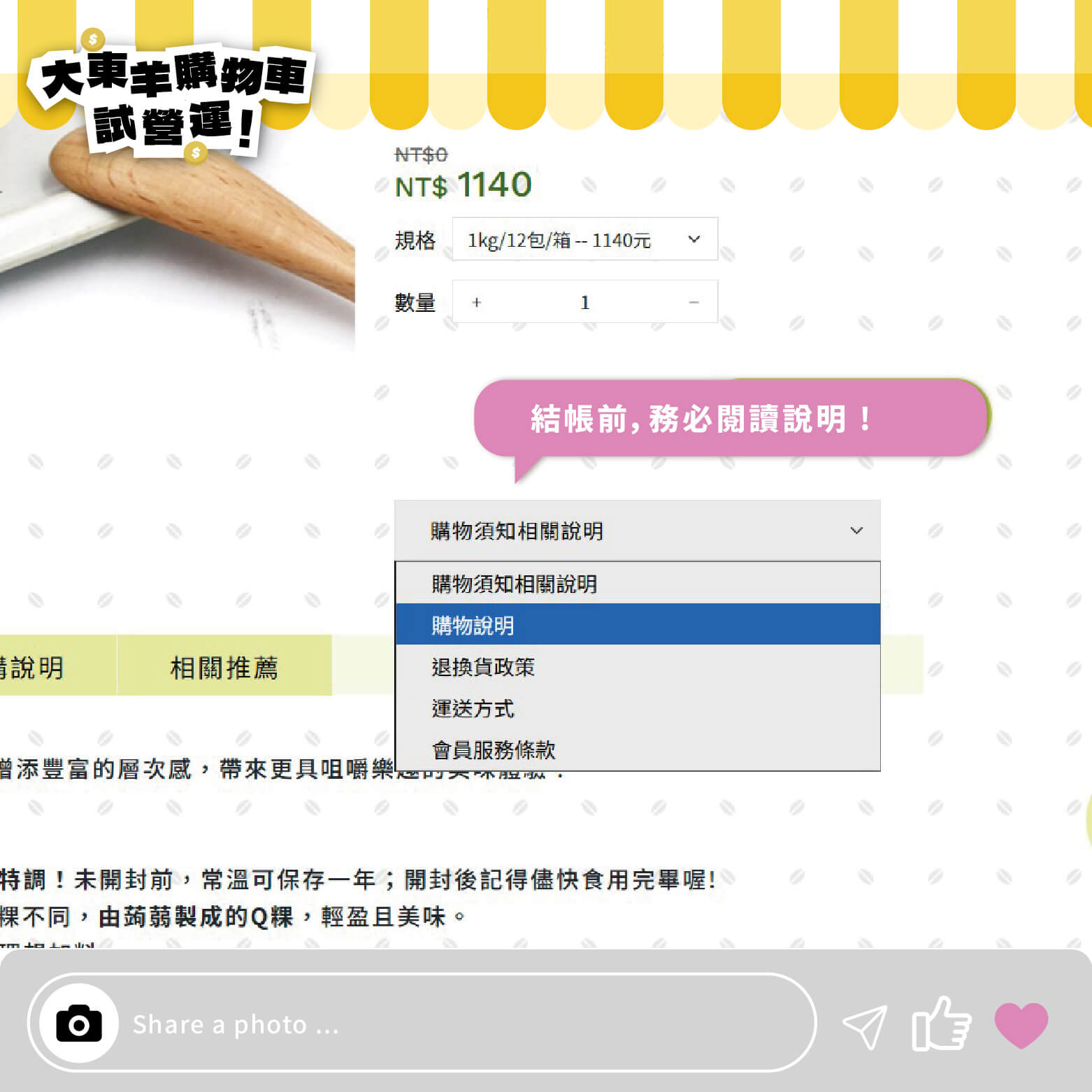 結帳前請務必閱讀訂購須知,了解運費、付款與出貨流程。