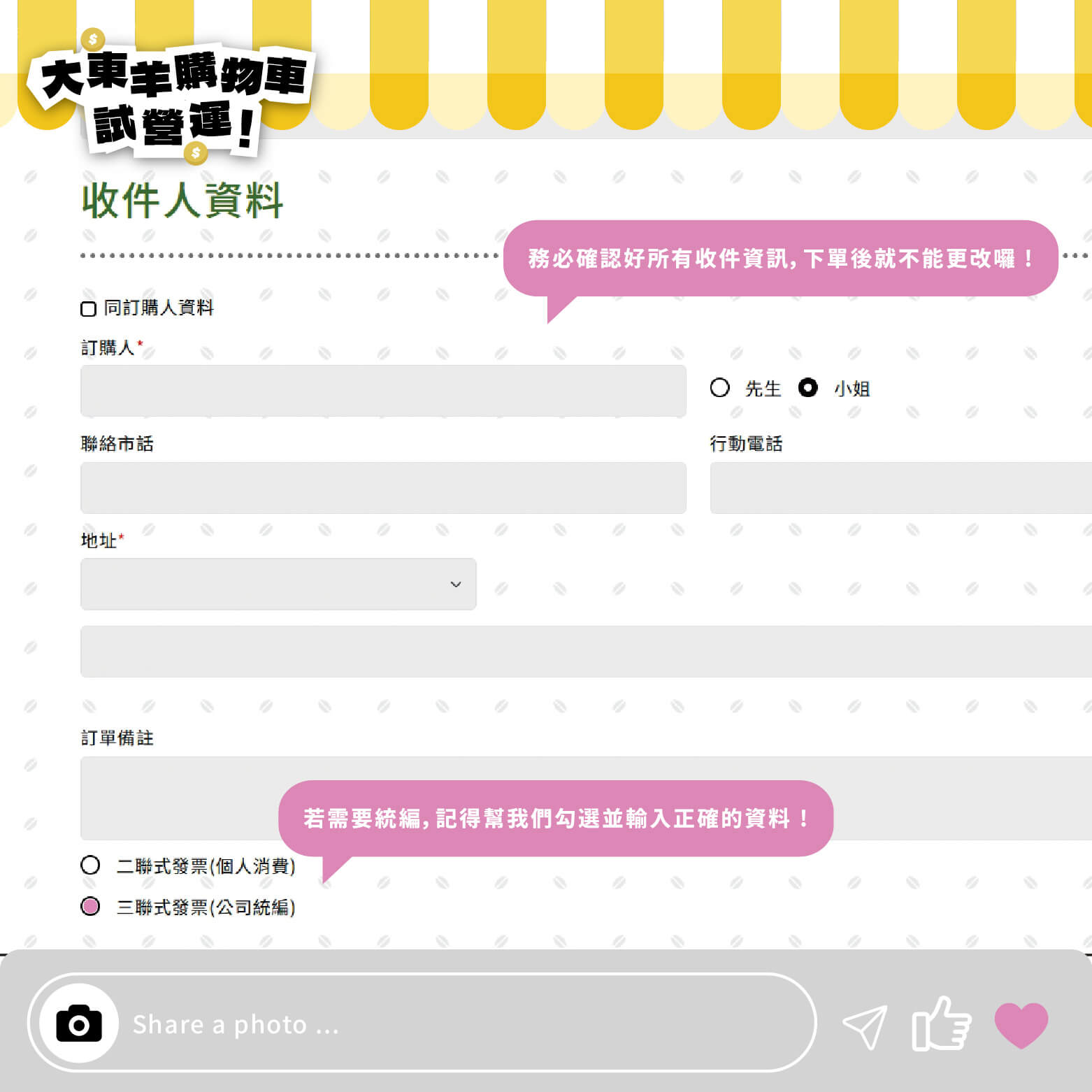 小提醒 : 若需要統編,請勾選開立公司發票,並輸入正確。